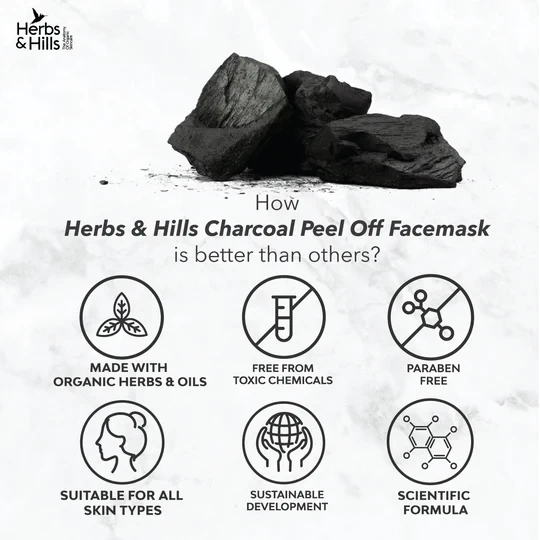 Herbs & Hills Charcoal Peel-Off Facemask is packed with unparalleled benefits for your skin. Crafted with a unique blend of natural and organic ingredients, this mask effectively deep cleanses, detoxifies, and rejuvenates your skin, leaving it feeling soft, supple, and refreshed. This peel-off mask will leave your skin looking and feeling its best, providing a healthy, radiant, and youthful complexion that you can be proud of.