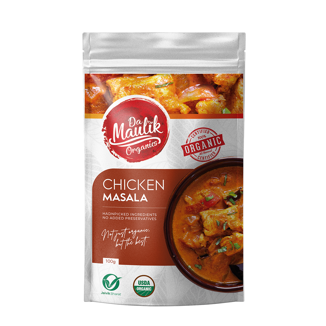 DaMaulik Organics Chicken Masala can be used as a marination or as a curry powder for chicken dishes. It adds a subtle flavour to the entire dish keeping it fresh and organic.