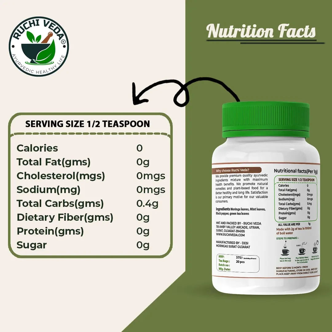 Moringa Leaves, Mint Leaves, Green Tea Leaves, Black Pepper