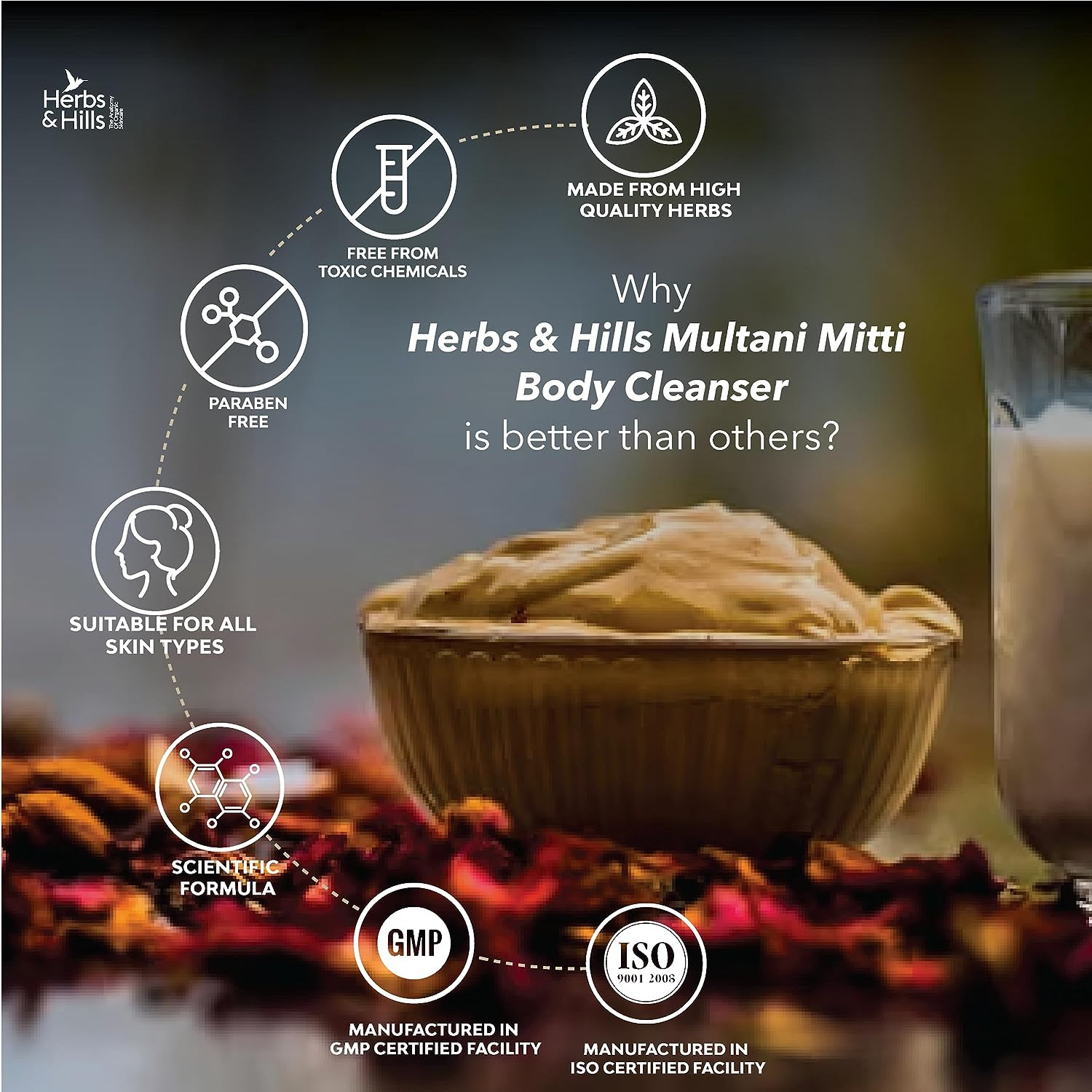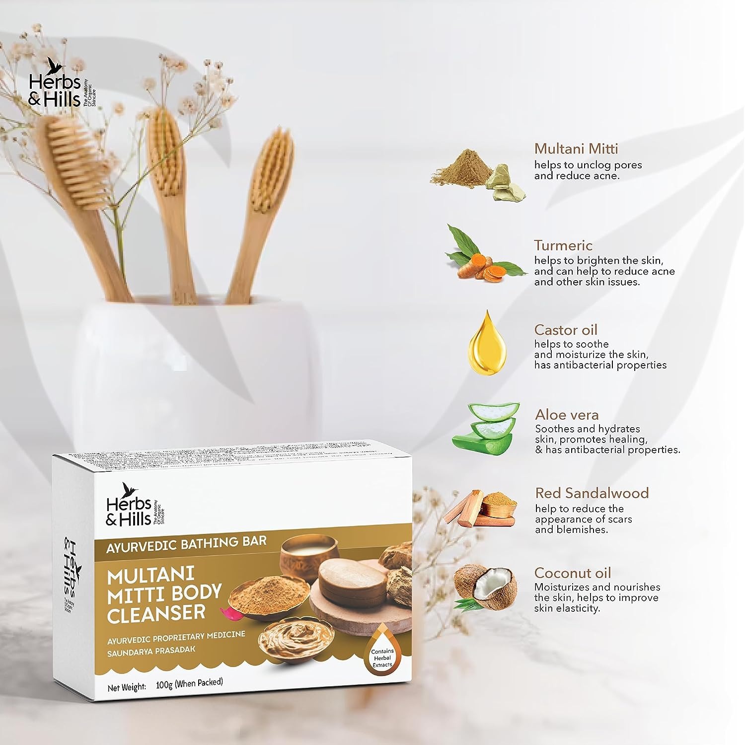 Herbs & Hills Multani Mitti Body Cleanser - 100g, Helps to Remove Dead Cells from the Skin & Improve the Complexion, Remove Pimples and Removes Scar Marks, Overcome the Problems of Skin Irritations