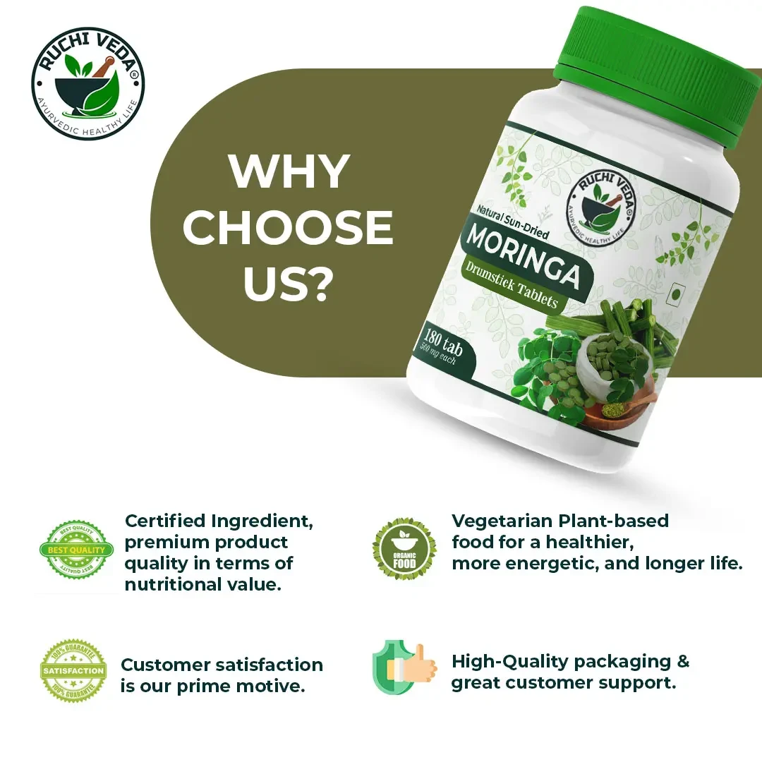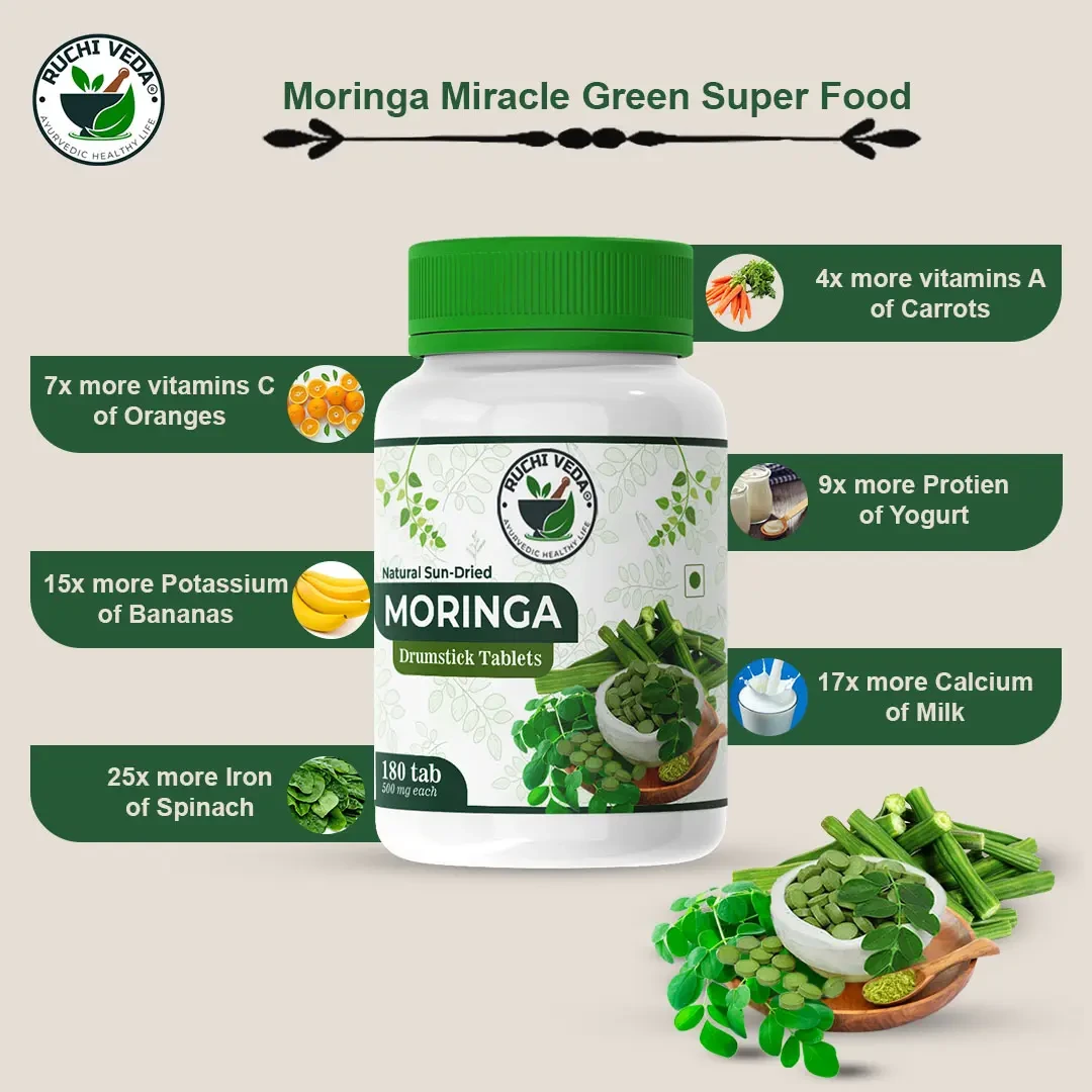 Nutrient-rich superfood that can boost your health every day. Packed with vitamins, minerals, and antioxidants, this tablet  is made from the leaves and drumstick of the Moringa tree, known as the "miracle tree." It's ideal for adding to daily life.