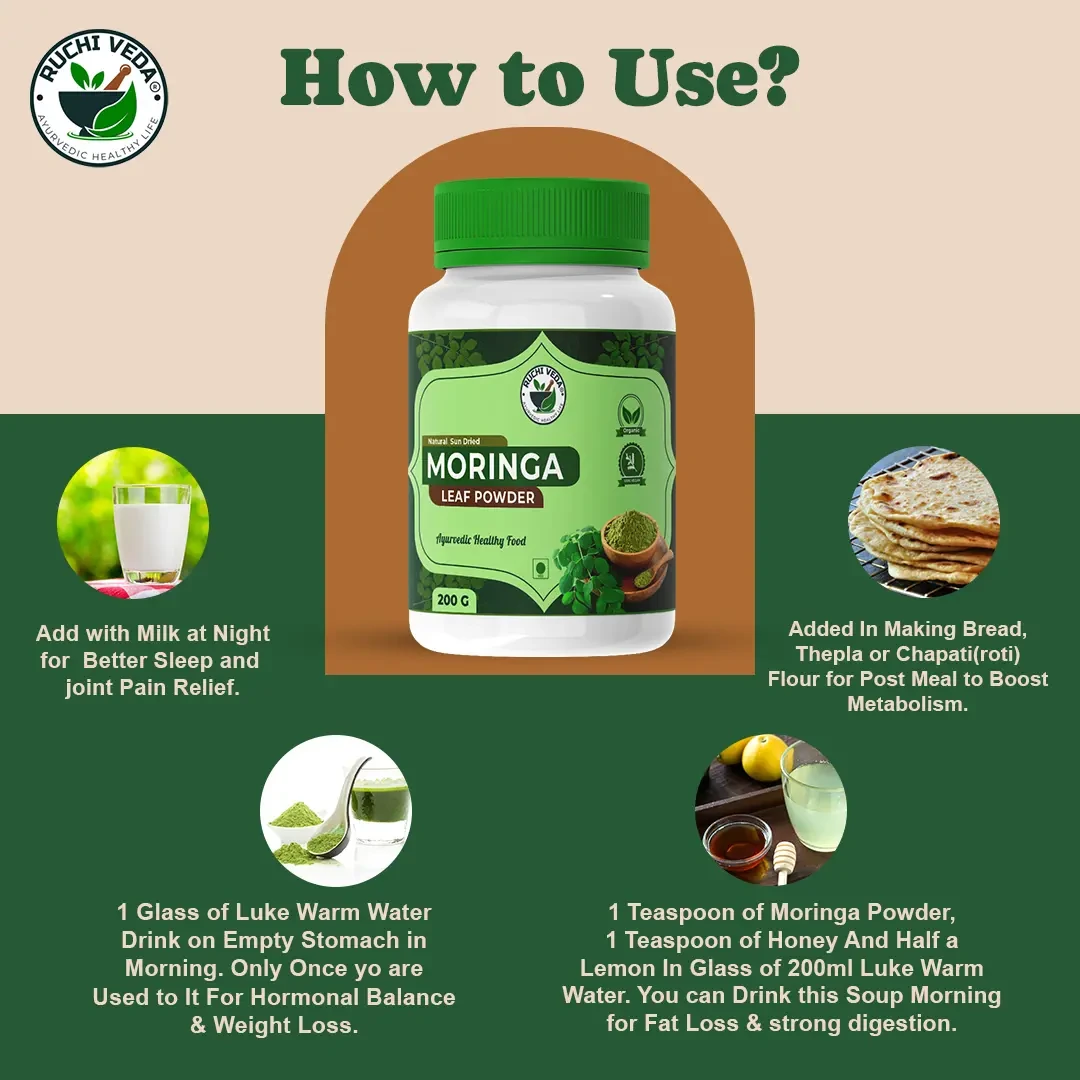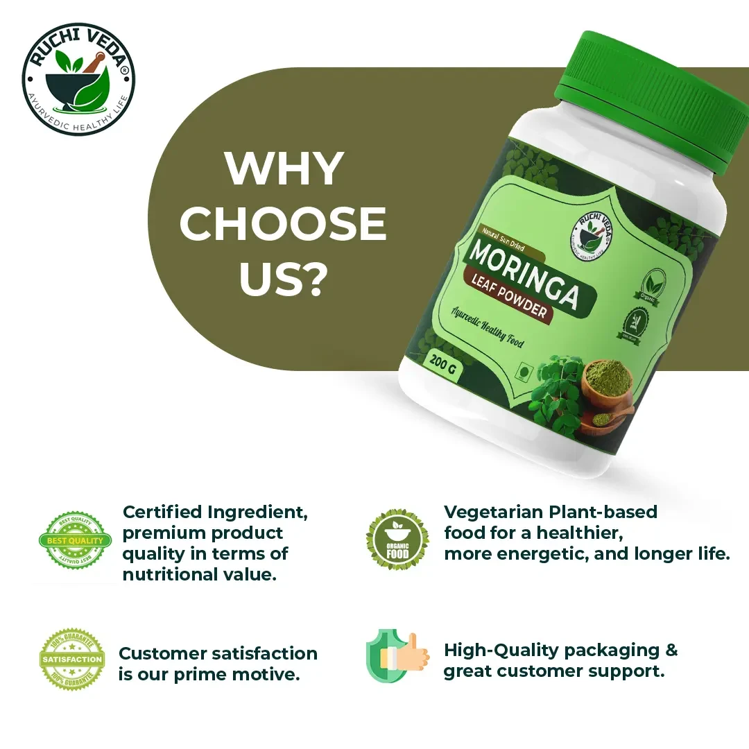 ✅ Satisfaction Guaranteed: Join our community of satisfied users who have experienced the transformative power of Ruchi Veda’s Moringa Leaf Powder. Invest in your health with confidence and see the difference it makes.