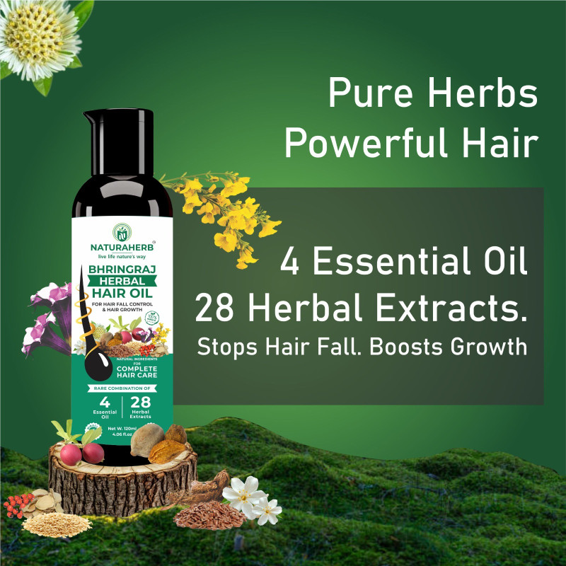 Naturaherb Bhringraj Hair Oil with 28 Herbal Extracts and 4 oil mix For Hairfall Control and Hair Growth