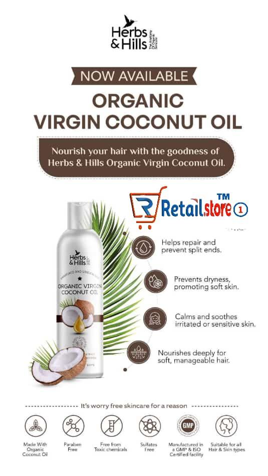 Nourish your hair with the goodness of Herbs & Hills Organic Virgin Coconut Oil.