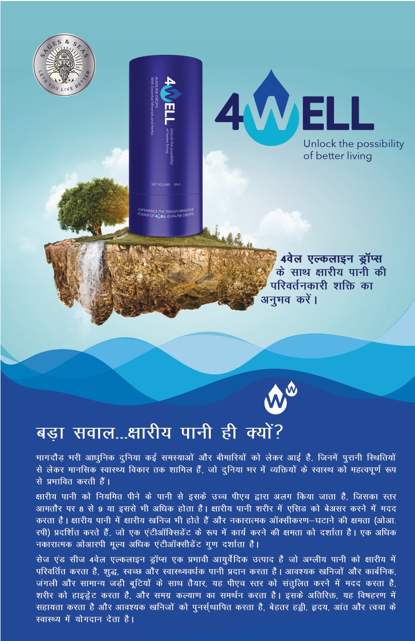 Sages & Seas 4WELL ALKALINE DROPS is an effective Ayurvedic product that converts acidic water into alkaline, providing pure, clean, and healthful water. Formulated with essential minerals and organic, wild and general herbs, It helps balance pH level, hydrate the body, and support overall well-being. Additionally, it aids in detoxification and restores essential minerals, contributing to better bone, heart, gut, and skin health. Experience the transformative power of alkaline water with 4WELL Alkaline Drops.