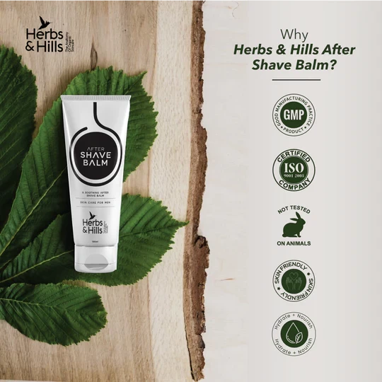 Herbs & Hills After Shave Balm is a natural and refreshing balm that hydrates and soothes your skin after shaving. It contains a unique blend of natural ingredients like Aloe Vera extract, Jojoba oil, Peppermint oil, Olive oil, and Avocado oil that help to prevent acne, reduce inflammation, and leave your skin feeling soft and moisturized.