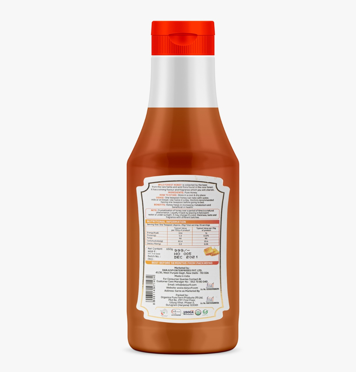 NOTE: Crystallization of honey over a period of time is a natural phenomenon. Liquefy it back by placing in hot/warm water or under sunlight. It may change it’s color, thickness, taste and fragrance with different batches.