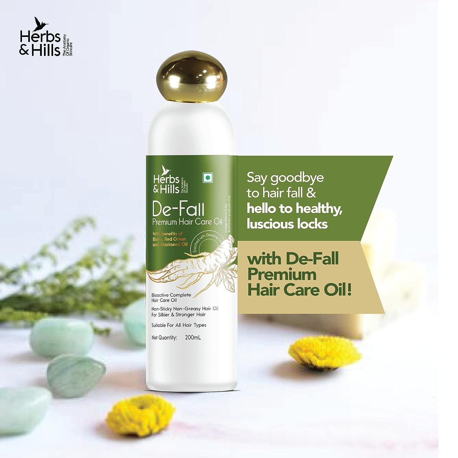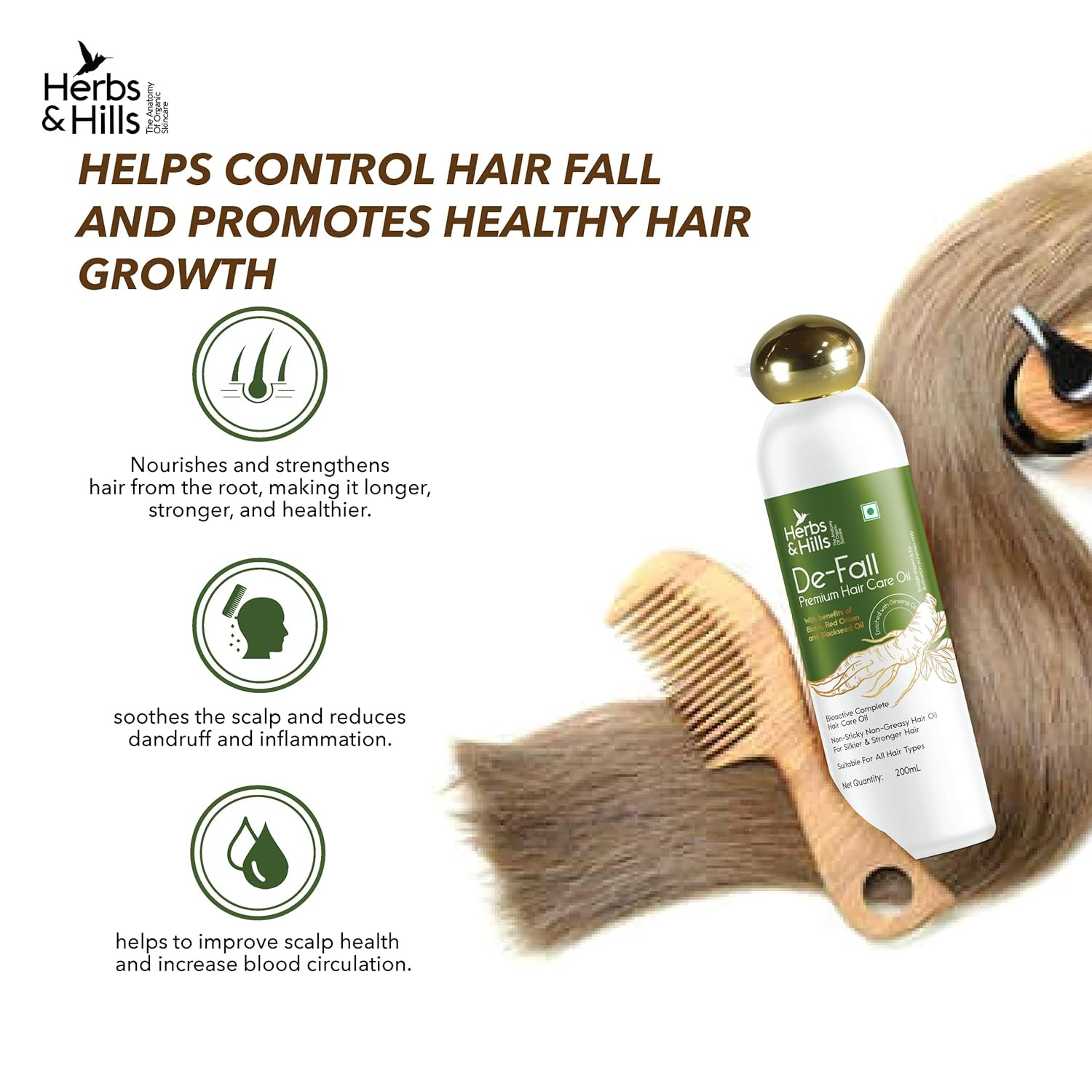 Herbs & Hills De Fall Premium Hair Care Oil - 200ml with Benfits of Biolin, Red Onion and Blackeseed Oil, For All Hair Types, Helps to Promote Hair Growth, Strength & Shine, Improves Scalp Health