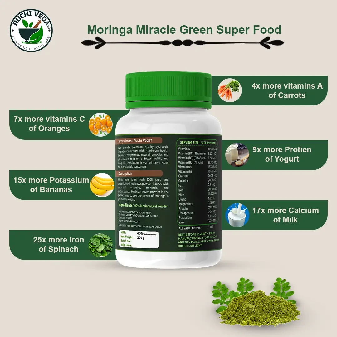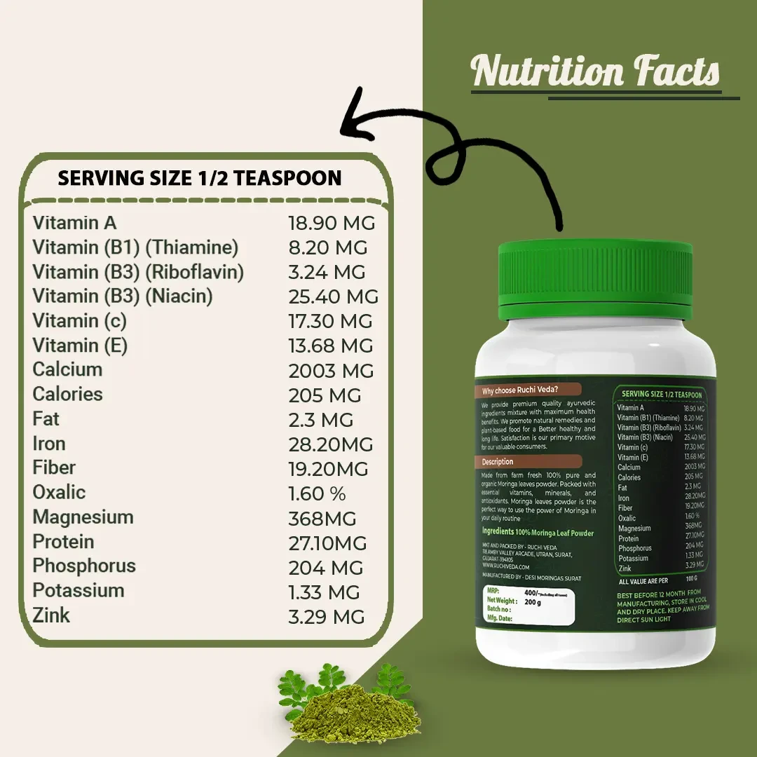 ✅ Satisfaction Guaranteed: Join our community of satisfied users who have experienced the transformative power of Ruchi Veda’s Moringa Leaf Powder. Invest in your health with confidence and see the difference it makes.