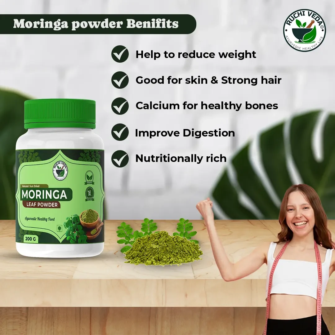 Dive into the goodness of nature with our premium "Moringa Leaf Powder." Packed with potent Moringa benefits, this powder is your gateway to enhanced well-being. Whether you prefer Moringa powder, leaves, or capsules, we've got you covered with top-notch quality and customer satisfaction guaranteed. Experience the nourishing power of Moringa with Ruchi Veda and embark on your journey to a healthier, happier you!