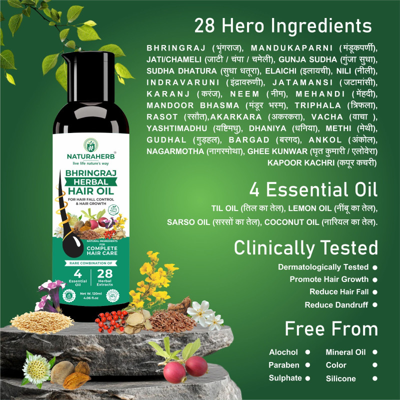 Naturaherb Bhringraj Hair Oil with 28 Herbal Extracts and 4 oil mix For Hairfall Control and Hair Growth