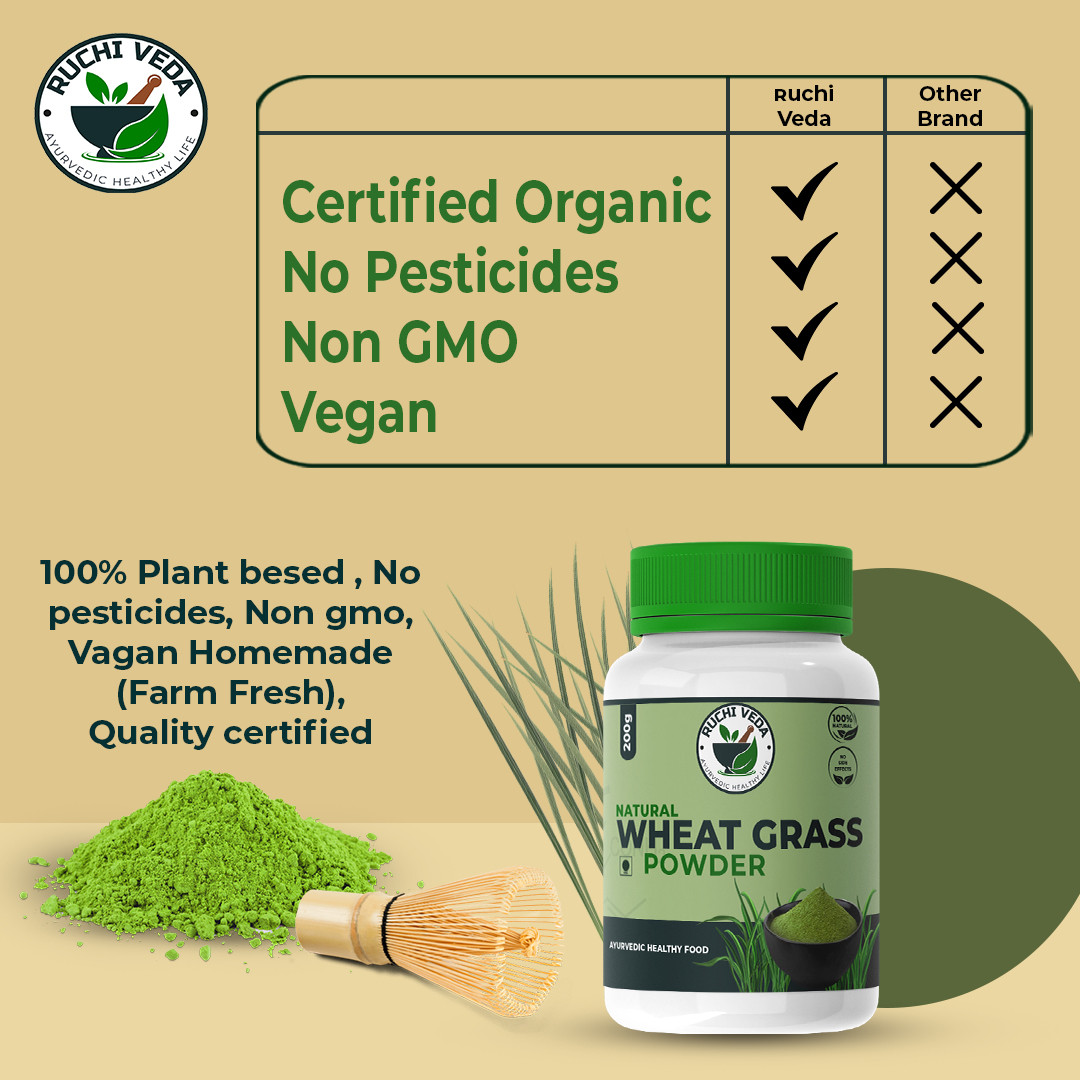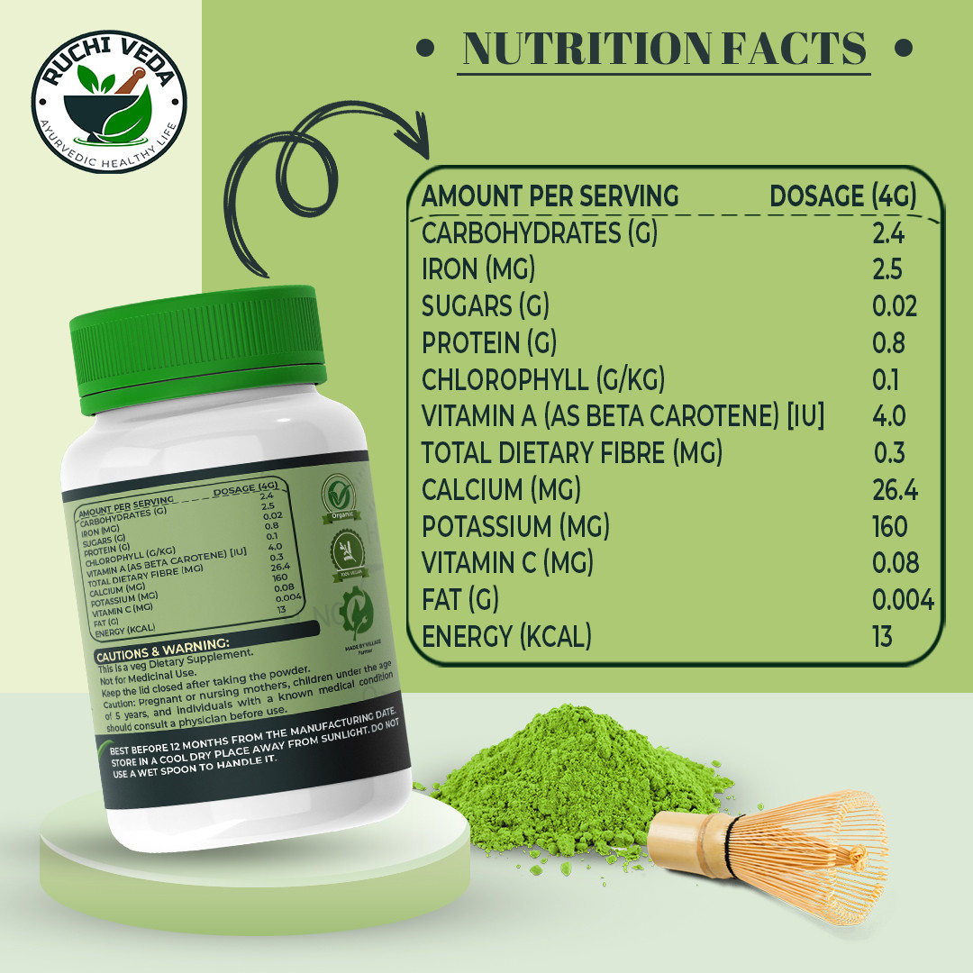 Our natural wheatgrass powder is rich in nutrients and made from freshly harvested wheat leaves. Organic wheatgrass powder is specifically chosen and processed with care to retain its maximum nutrition.